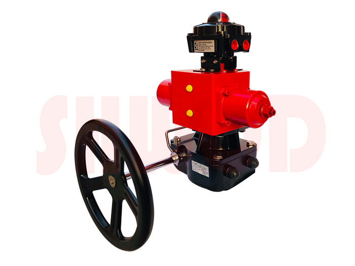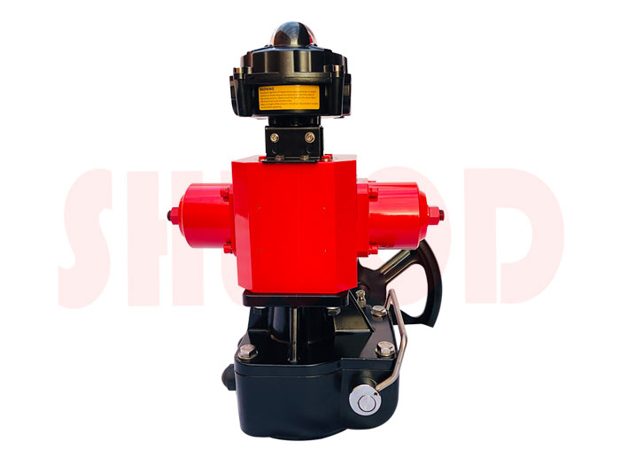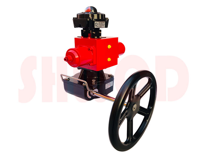 本執(zhí)行器附帶手動裝置,使用時,向上拉起手柄,轉(zhuǎn)動手輪,即可實(shí)現(xiàn)開閥和關(guān)閥。
