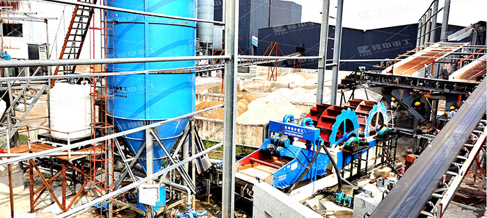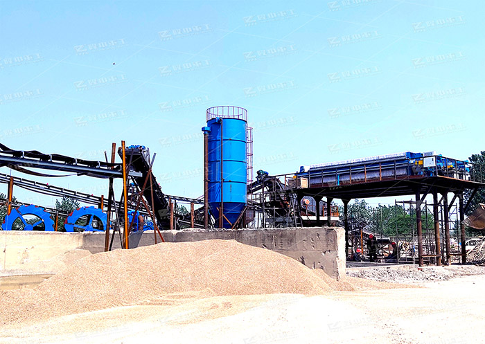 7月初江蘇連云港某家企業(yè)與隆中重工達(dá)成合作,新建一條新型環(huán)保河卵石機(jī)制砂清洗生產(chǎn)線,本方案對機(jī)制砂進(jìn)行清洗回收,并對洗砂尾水進(jìn)行干排處理。目前,該項目已正式投產(chǎn)。