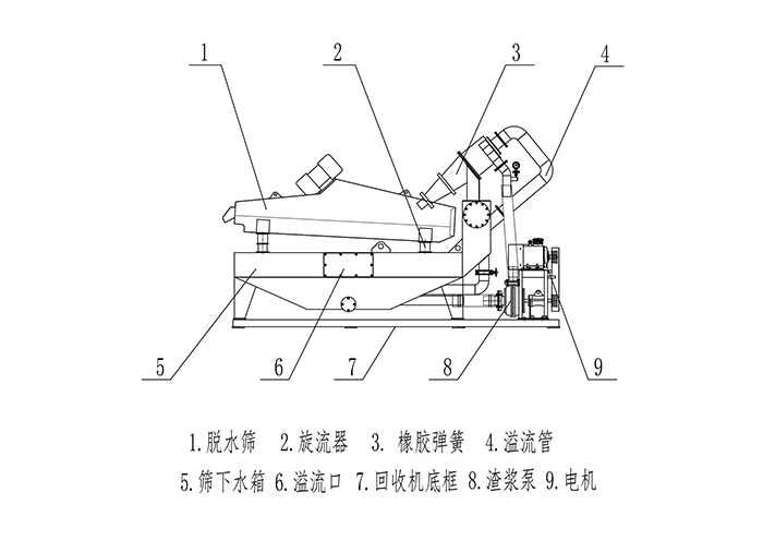 泵將篩下水箱中的砂水混合物輸送至分離系統(tǒng),經(jīng)分離器濃縮的細砂由分離器出料口提供給脫水篩,與篩上粗砂一起脫水后產(chǎn)出成品砂,實現(xiàn)細砂的回收利用。脫水篩脫水過程中,少量細砂透過篩網(wǎng)再次回到篩下水箱,經(jīng)泵與分離系統(tǒng)重復抽取,再次回收,最終實現(xiàn)流失細砂的有效回收。