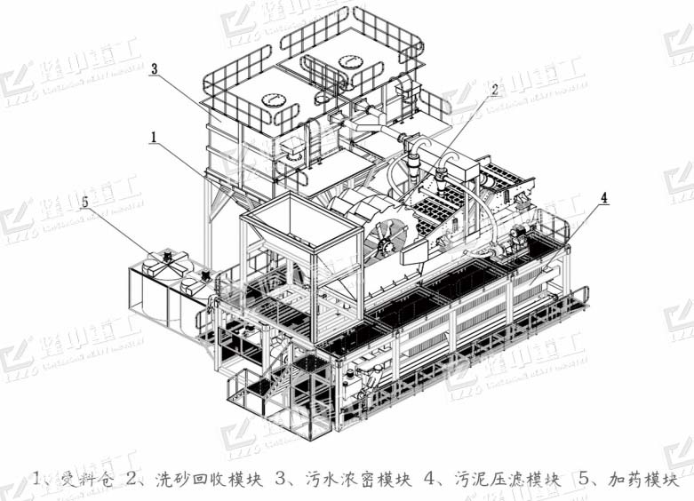 上圖是模塊化洗砂回收、尾水凈化、固廢干排設(shè)備